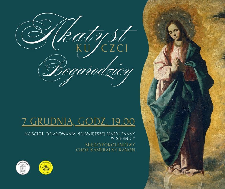 - W związku z Uroczystością Niepokalanego Poczęcia Najświętszej Maryi Panny serdecznie wszystkich zapraszamy dziś na godzinę 1900 na nabożeństwo : Akatyst ku czci Bogarodzicy, w wykonaniu Chóru Kanon. Ostatni raz hymn ten był wykonywany przez nasz chór w 2015 r, więc warto ponownie go posłuchać i włączyć się do wspólnej modlitwy na cześć Matki Bożej.